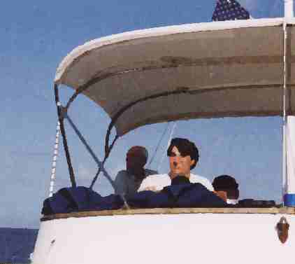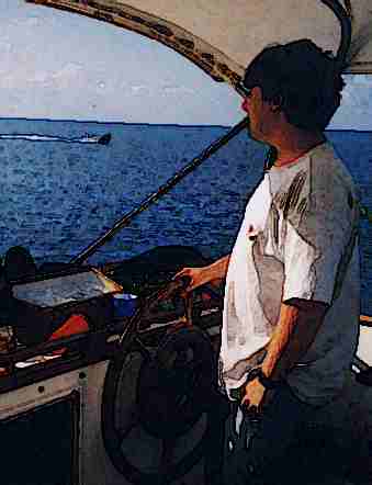The clouds were like giant puffs of cotton, and seemed quite close. Far below, sunlight glinted off the tops of what appeared to be tiny ripples. Chris knew they were really large waves; in fact, he could see the "V"-shaped wake of a tanker some 1,500 feet below, carrying a cargo of crude from the oil fields of Texas across the Gulf. Chris tried to picture himself at the helm of the great ship, looking forward across the vast deck, eyes scanning from sea to radar screen and back to his instruments.