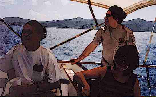 "Uncle, would you please close up down here and get this ship back on course for St. Croix?" Papa said. "And, Chris, please wring out our wet clothes and put them in the laundry basket while we go get a hot shower." Suddenly, everybody was busy doing what needed to be done.